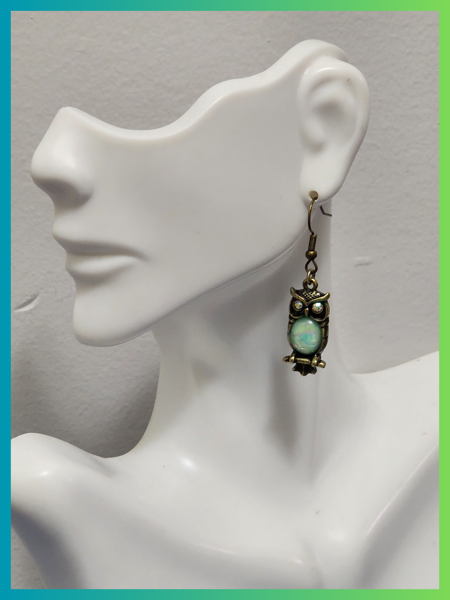 Enhance your style with a hint of nighttime wisdom by adorning these Imitation Opal Owl Earrings!